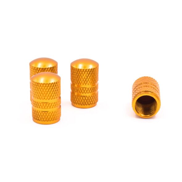 Βαλβίδες αλουμινίου για ελαστικά αυτοκινήτου και μηχανής σε πορτοκαλί χρώμα.