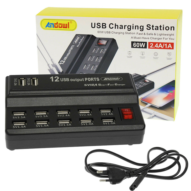 Βάση Φόρτισης 100-240V με 12 Θύρες USB-A 60W 2.4A/1A Andowl - Μαύρη