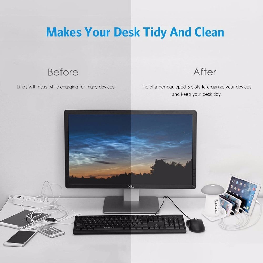 Ο επιτραπέζιος φορτιστής πολύμπριζο USB με 5 θύρες και LED Φωτιστικό Γραφείου είναι ένα πρωτοποριακό gadget που συνδυάζει έναν πολυφορτιστή και ένα απλό κομψό φωτιστικό!