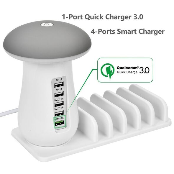 Βάση Φόρτισης 5 x USB Fast Charge & LED Φωτιστικό Γραφείου - Επιτραπέζιος Desktor Φορτιστής 5-Port Quick Charger