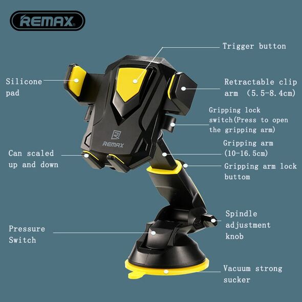 REMAX RM-C26 Βάση στήριξης smartphone με βεντούζα και περιστρεφόμενη κεφαλή 360° σε χρώμα μαύρο/κίτρινο !