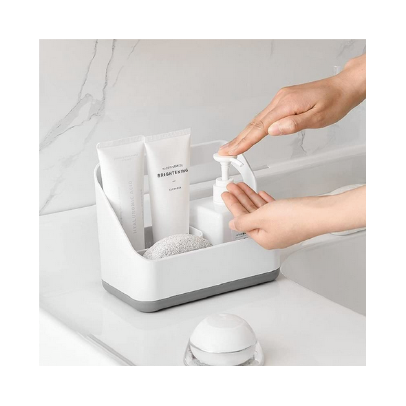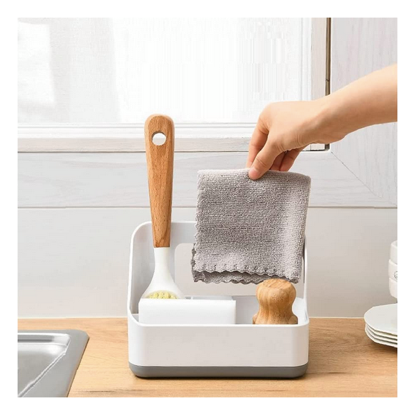 Πλαστική βάση οργάνωσης για τον νεροχύτη της κουζίνας ή τον νιπτήρα του μπάνιου, με 3 μικρές θήκες και μία μεγάλη, που θα σας βοηθήσει να εξοικονομήσετε χώρο εύκολα και υγιεινά.