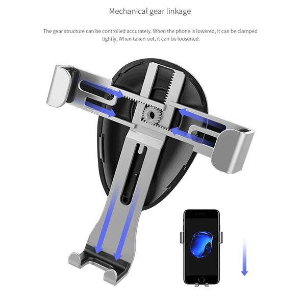 - Διαθέτει έξυπνο μηχανισμό στήριξης που ταιριάζει σε όλους τους αεραγωγούς. Κρατάει το κινητό σας σταθερό στο επίπεδο των ματιών σας, και μπορεί να περιστρέφεται κατά 360 μοίρες.