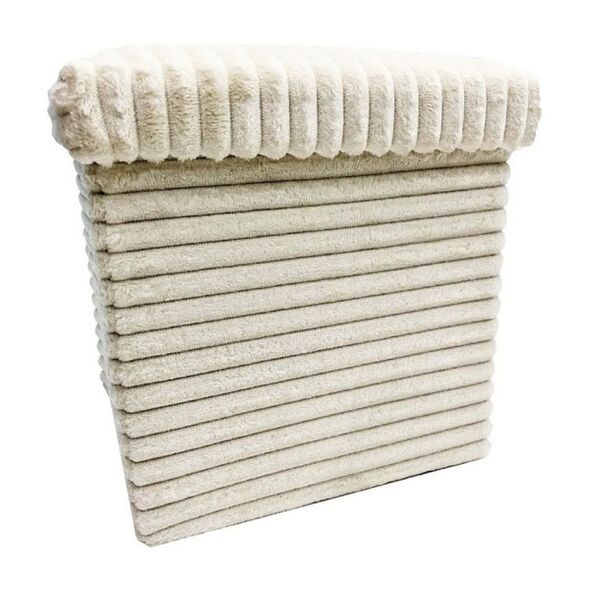 Βελούδινο Σκαμπό με Κοτλέ Ύφανση και Αποθηκευτικό Χώρο 38x38x38cm Λευκό