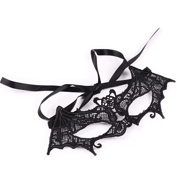 Βενετσιάνικη Υφασμάτινη Μάσκα Ματιών Νυχτερίδα με Μακραμέ, Δαντέλα και Κορδελάκια Μαύρη