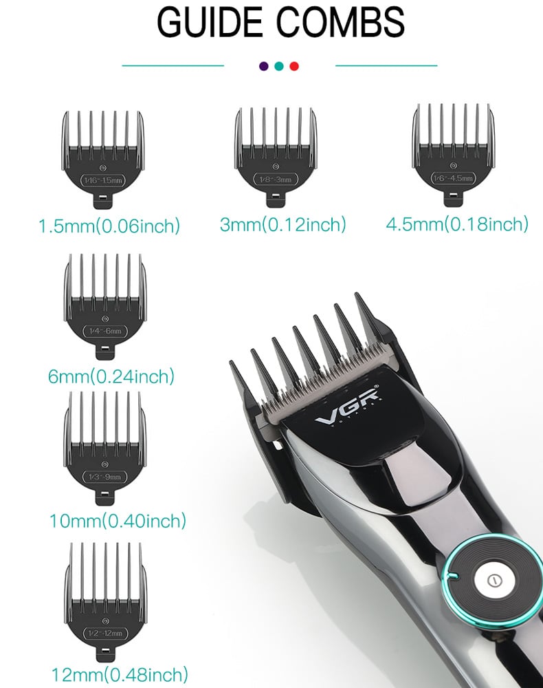 Συνοδεύεται από 6 διαφορετικές χτένες - οδηγούς έτσι ώστε να μπορείτε να ρυθμίσετε εύκολα το μήκος κοπής που θέλετε.