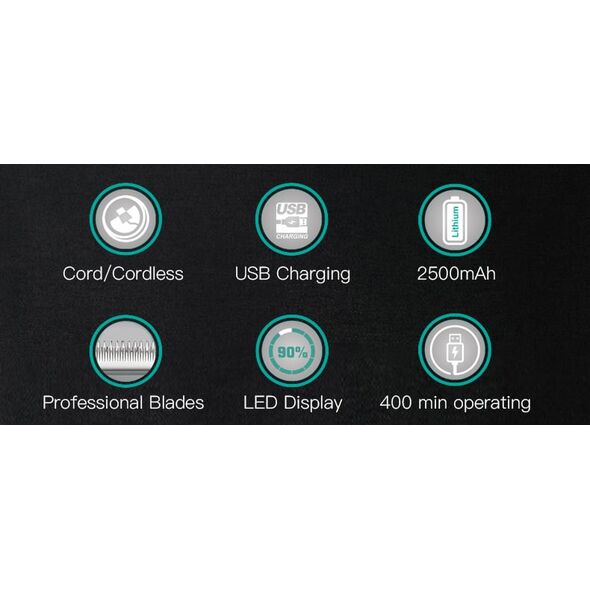 - 1 x VGR Επαναφορτιζόμενη Επαγγελματική Κουρευτική Μηχανή 10W Ρυθμιζόμενου Μήκους Κοπής με 15 Ταχύτητες & LCD Οθόνη