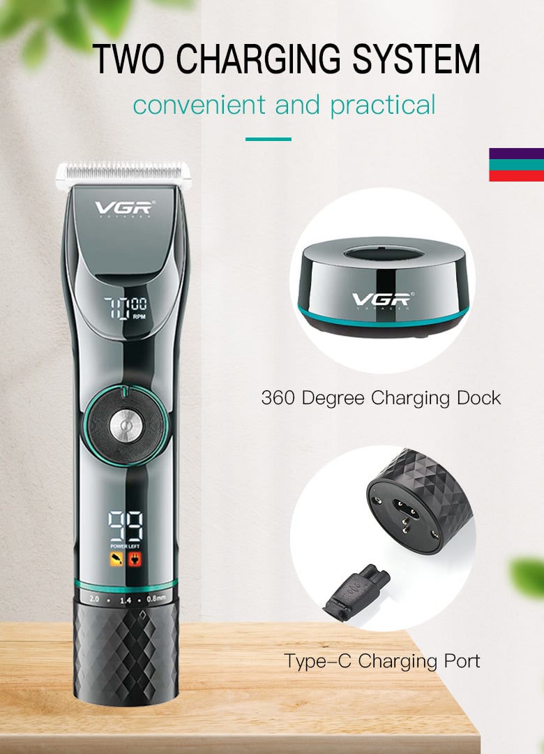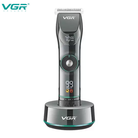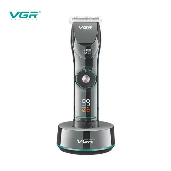 VGR Επαναφορτιζόμενη Επαγγελματική Κουρευτική Μηχανή 10W Ρυθμιζόμενου Μήκους Κοπής με 15 Ταχύτητες & LCD Οθόνη