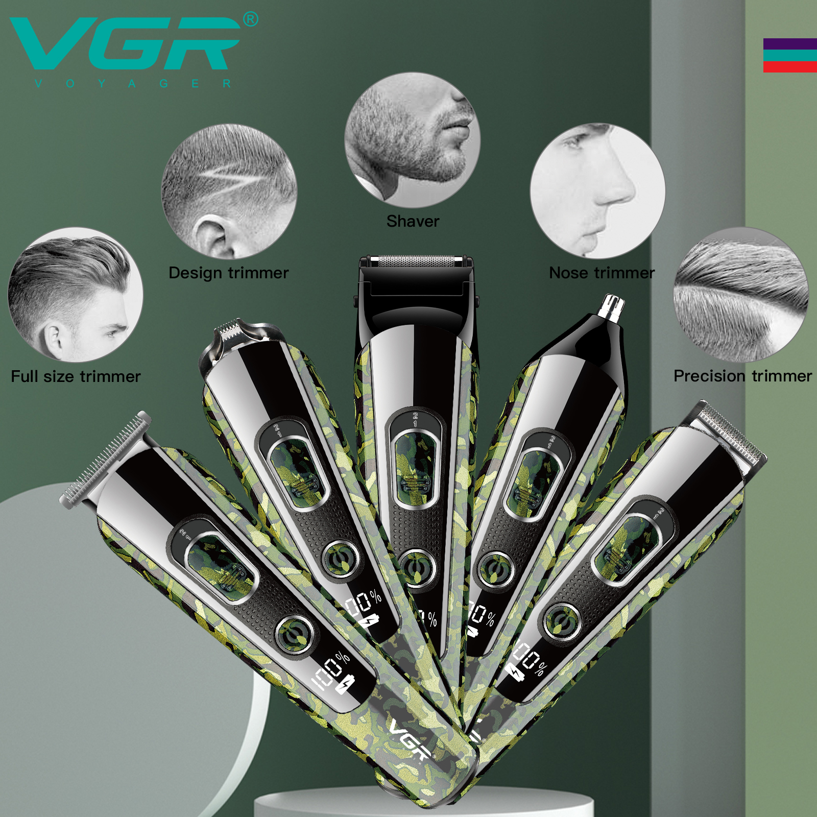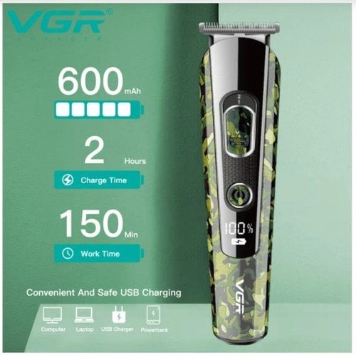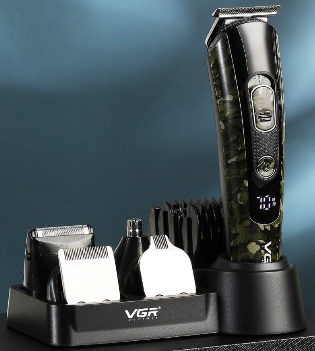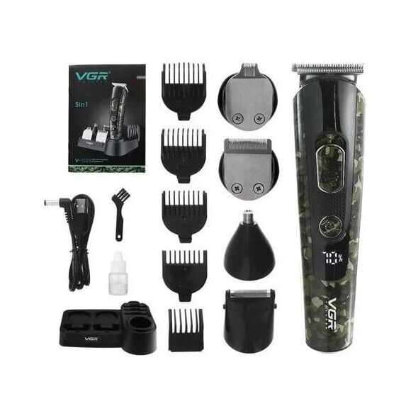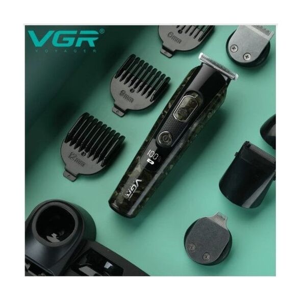 VGR® Επαναφορτιζόμενη Επαγγελματική Κουρευτική Μηχανή Ψηφιακή 5in1 Kit Hair Trimmer