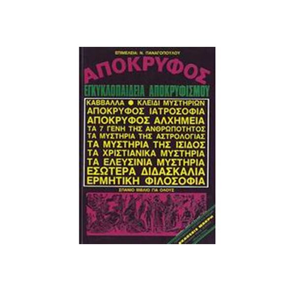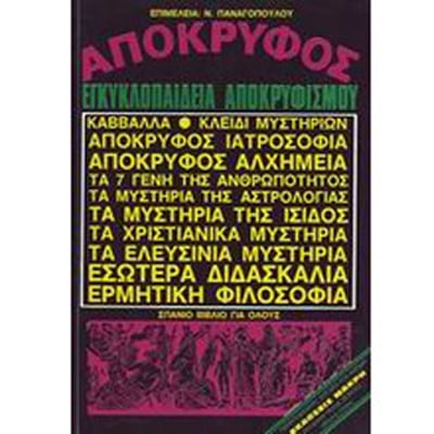 Πρόκειται για ένα σπάνιο βιβλίο που θα σας ταξιδέψει στον κόσμο, την ιστορία και τη φιλοσοφία του αποκρυφισμού. Θα καλύψει θεματικές ενότητες όπως η Καββάλα, το Κλειδί Μυστηρίων, Απόκρυφος Γιατροσόφια, Απόκρυφος Αλχημεία, Τα 7 Γένη της Ανθρωπότητας, Τα μυστήρια της Αστρολογίας, Τα Μυστήρια της Ίσιδος, Τα Χριστιανικά Μυστήρια, Τα Ελευσίνια Μυστήρια, Εσωτέρα Διδασκαλία, Ερμητική Φιλοσοφία.