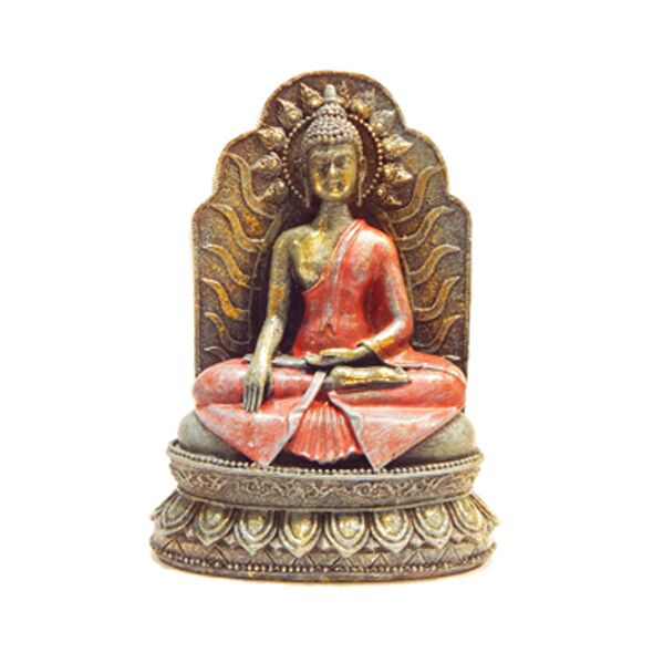 Ο Βούδας καθιστός στο θρόνο του, σε θέση διαλογισμού φορώντας πορφυρό χιτώνα, (το κόκκινο χρώμα ενισχύει τη δύναμη και την ενέργεια του συμβόλου), με την αύρα του ενεργοποιεί τις πνευματικές και σωματικές λειτουργίες χαρίζοντας σε εσάς ενέργεια, ζωντάνια, ευεξία, πνευματική δύναμη, διορατικότητα και αστείρευτη σωματική αντοχή.