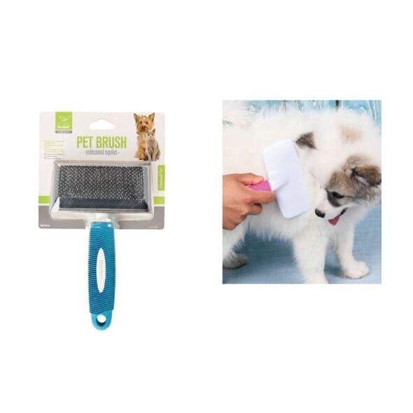 Αυτή η βούρτσα περιποίησης για κατοικίδια, προσφέρει την κατάλληλη περιποίηση στο τρίχωμα του μικρού σας φίλου. Με ένα χτένισμα απομακρύνει το περιττό τρίχωμα και τις βρομιές, κάνοντας παράλληλα ένα ελαφρύ μασάζ. Αποτέλεσμα: το τρίχωμα θα είναι λαμπερό και υγιές! Πρόκειται για βούρτσα κατάλληλη για μεσαία και μακρύτριχα κατοικίδια, εξοπλισμένη από τρίχες σύρματος από ανοξείδωτο χάλυβα που εξαλείφουν τις νεκρές τρίχες, καθιστώντας το τελικό χτένισμα του τριχώματος του κατοικίδιου ζώου σας πολύ ευκολότερο.