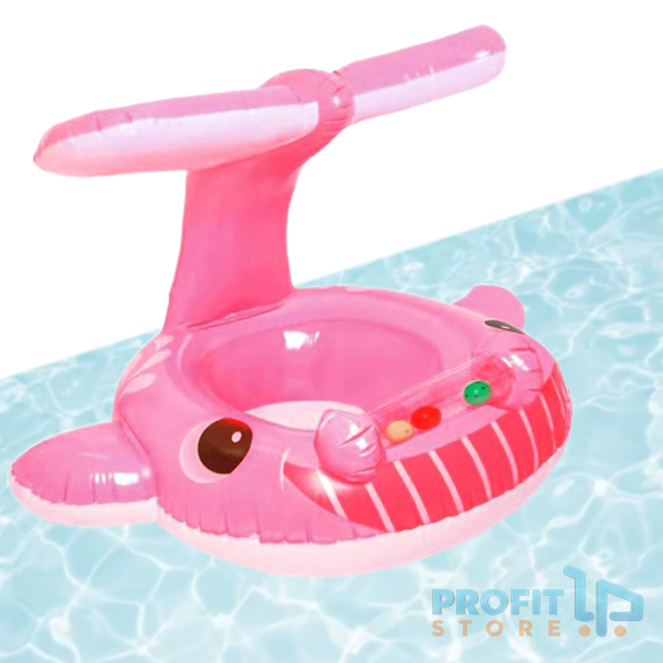 Βρεφικό - Παιδικό Φουσκωτό Σωσίβιο Κάθισμα Φαλαινάκι με Σκίαστρο σε Σχήμα Ουράς Φάλαινας - Baby Swimming Ring