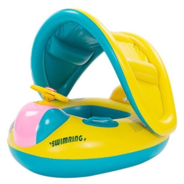 Βρεφικό - Παιδικό Φουσκωτό Σωσίβιο με Τιμόνι - Λαβές & Σκίαστρο - Inflatable Swim Boat with Shade 73x64cm