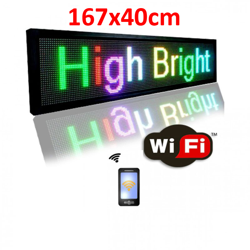 WiFi Αδιάβροχη Ηλεκτρονική Πινακίδα Μονής Όψης με Κυλιόμενη Επιγραφή Πολύχρωμα LED σε Διάφορες Διαστάσεις