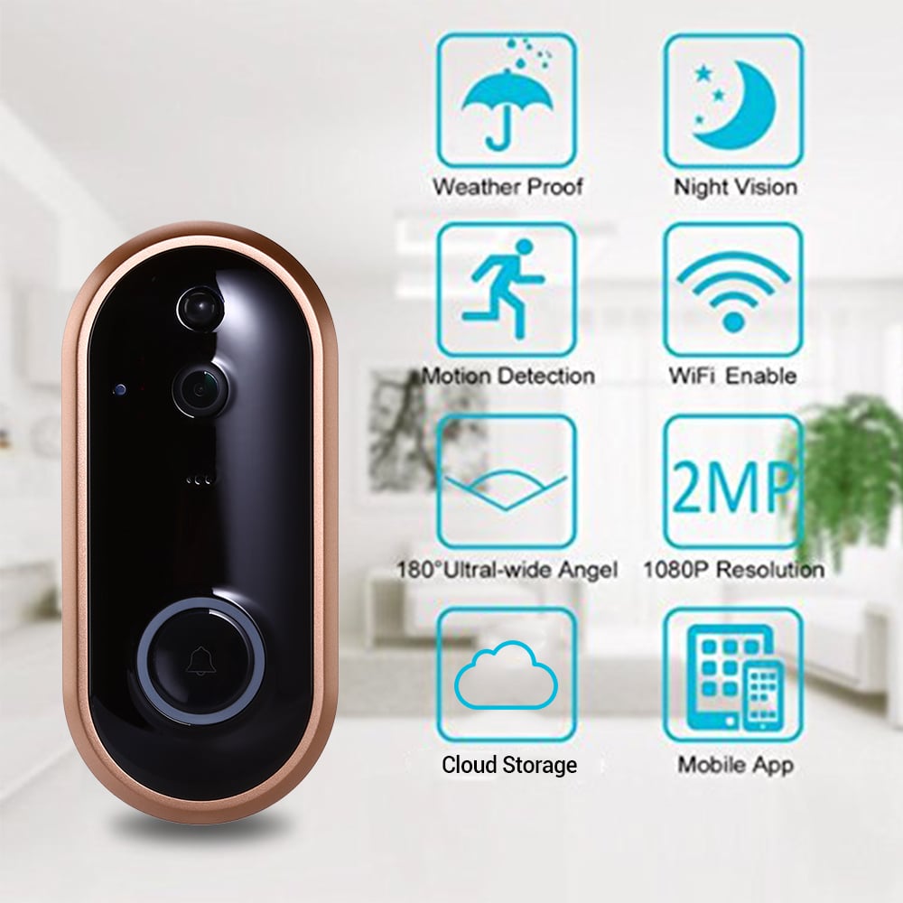 Wifi Αδιάβροχη Ασύρματη Κάμερα HD, Κουδούνι Πόρτας - Θυροτηλεόραση IP με Ανιχνευτή Κίνησης - Video Doorbell Two-way Audio - Σύνδεση με Κινητό