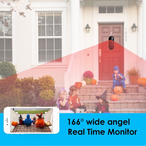Η ασύρματη κάμερα και κουδούνι πόρτας διαθέτει γωνία θέασης 166°, νυχτερινή όραση εμβέλειας 10 μέτρων, σύνδεση μέσω Wifi με εύκολες ρυθμίσεις και αμφίδρομη επικοινωνία ήχου.