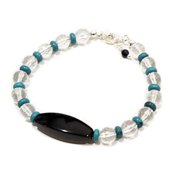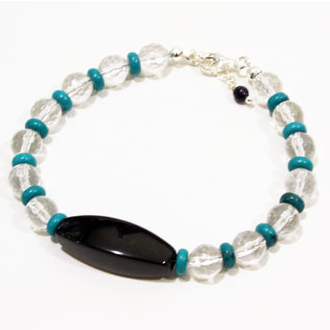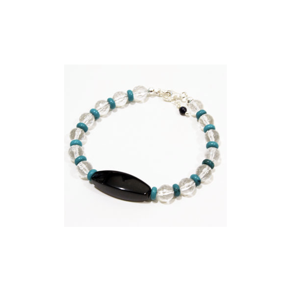 Τυρκουάζ, 6 mm: Το Τυρκουάζ αποτελεί έναν πολύ όμορφο αλλά και δυνατό λίθο. Αποτελεί καλό θεραπευτή καθώς προστατεύει το φυσικό μας σώμα από τυχόν δυσλειτουργίες, ενώ παράλληλα έχει την τάση να εξαγνίζει και την ψυχή. Συσχετίζεται με τον ουρανό φέρνοντας την ουράνια ενέργεια στη γη. Αποτελεί ηρεμιστικό ορυκτό που χρησιμοποιείται για να βοηθήσει να αποβάλλουμε το στρες και αποτελεί άψογο αρωγό στην επίλυση των διαφορών με τους γύρω μας. Απορροφάει την αρνητική ενέργεια και φέρνει τύχη, ενώ αποτελεί πολύ ισχυρό προστατευτικό φυλαχτό. Αποτελεί την καλύτερη ασπίδα προστασίας ενάντια στη βασκανία, τη γλωσσοφαγιά αλλά και τα ατυχήματα, καθιερώνοντας την παράδοση της θαλασσιάς πέτρας για προστασία από το κακό μάτι. Πιστεύεται ότι σε περιπτώσεις που μας έχει προστατέψει από κάποιο μεγάλο κακό, η πέτρα χάνει το χρώμα της, ραγίζει ή μπορεί ακόμα και να σπάσει.