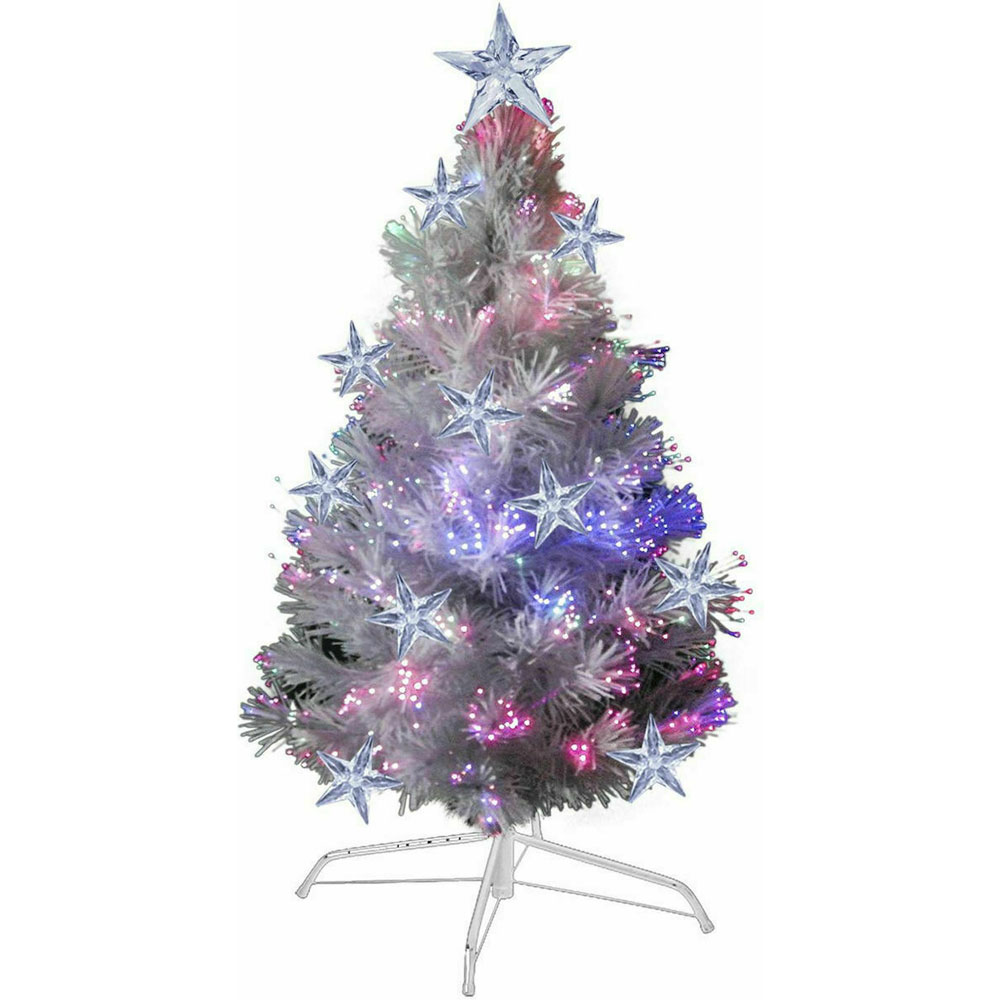 Χιονισμένο Χριστουγεννιάτικο Δέντρο Λευκό με RGB Οπτικές Ίνες και Αστεράκια LED 90cm με Πολύχρωμη Αντανάκλαση - White Christmas Tree