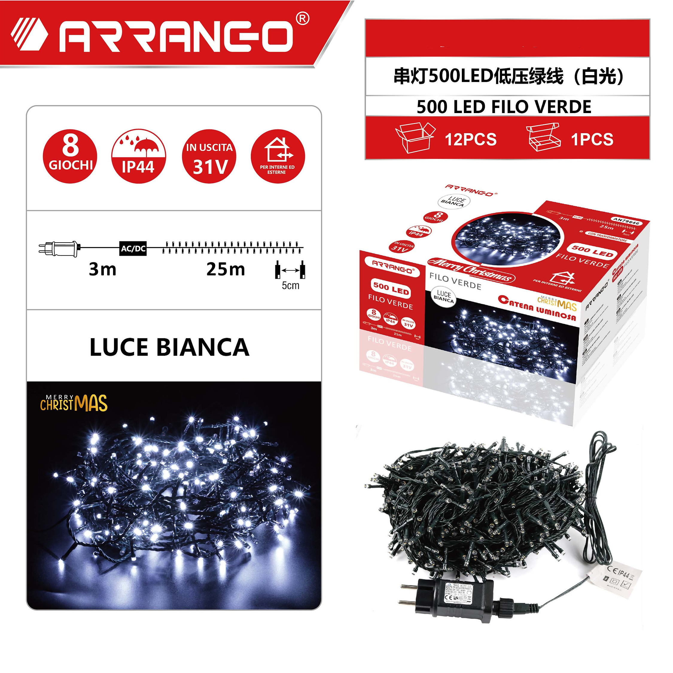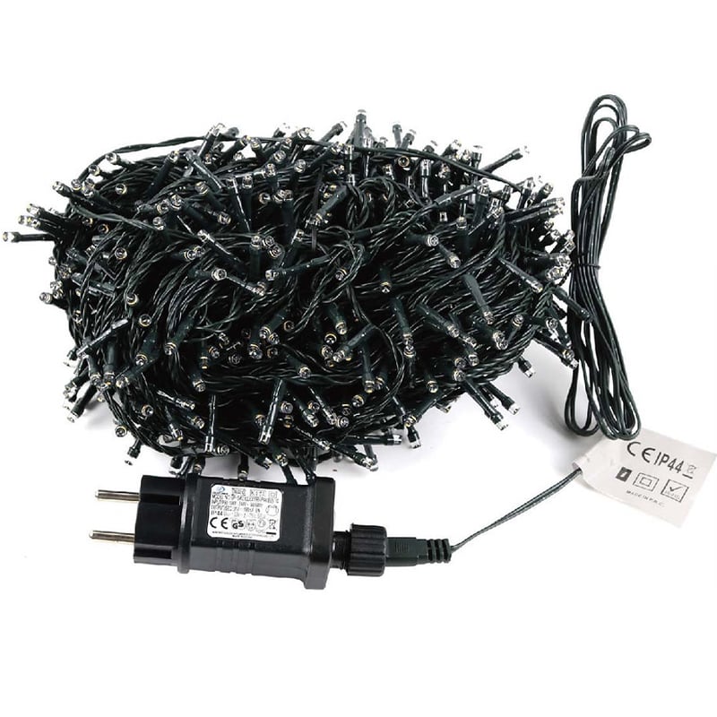 Πρόκειται για 25m λαμπάκια σε σειρά με πράσινο καλώδιο και 500 LED, όπου εκπέμπουν ψυχρό λευκό φωτισμό και 3m καλώδιο.