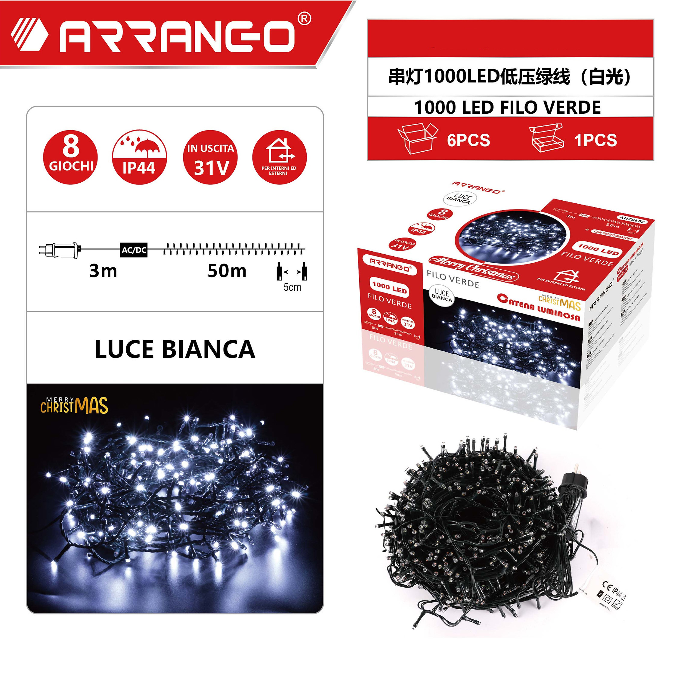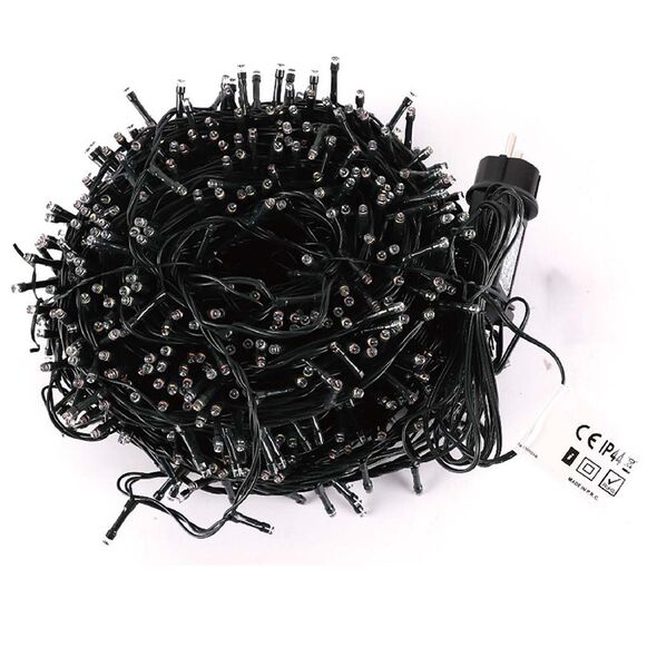 Πρόκειται για 50m λαμπάκια σε σειρά με πράσινο καλώδιο και 1000 LED, όπου εκπέμπουν ψυχρό λευκό φωτισμό και 3m καλώδιο.