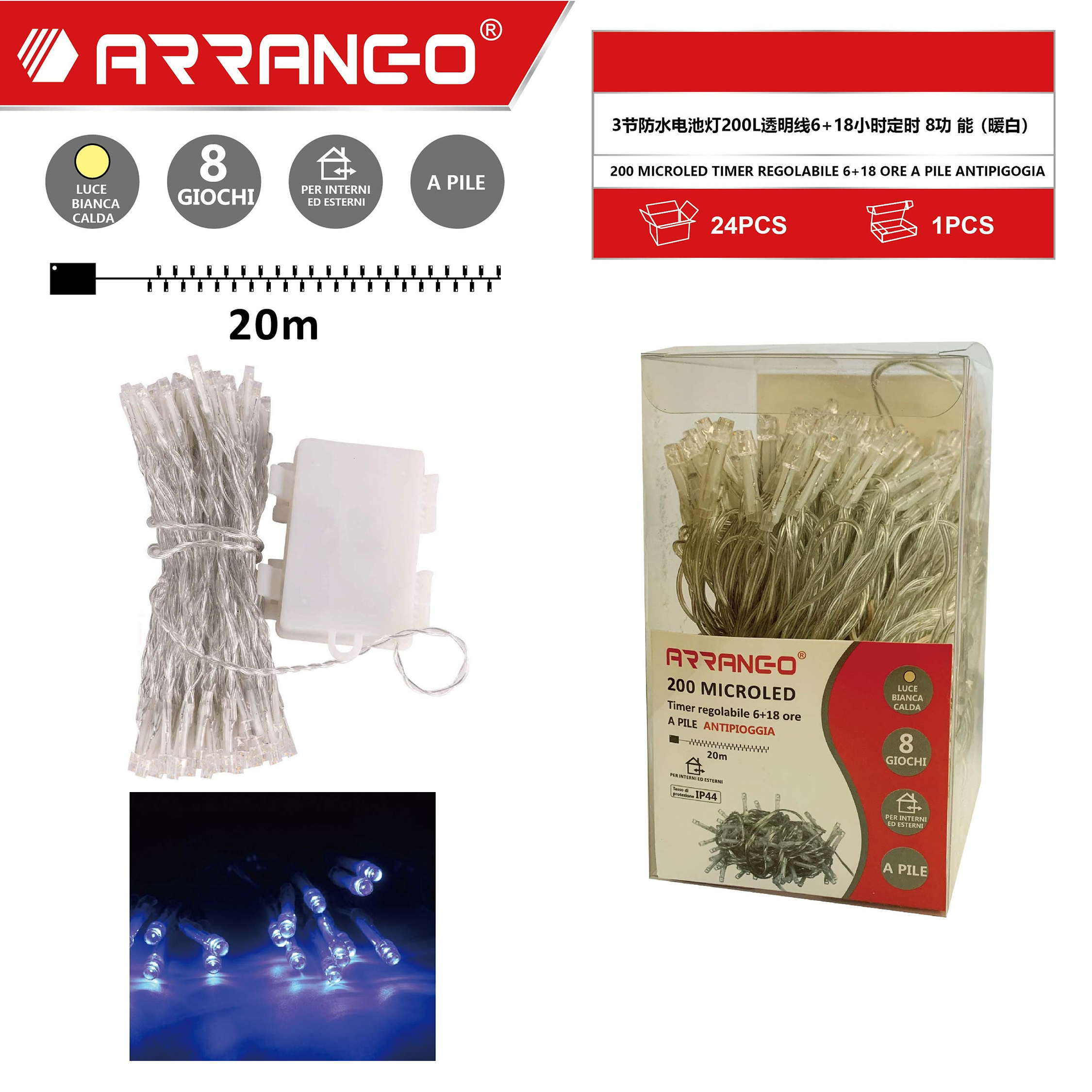 Πρόκειται για 20m λαμπάκια σε σειρά με διάφανο καλώδιο και 200 microLED, όπου εκπέμπουν ψυχρό λευκό φωτισμό.