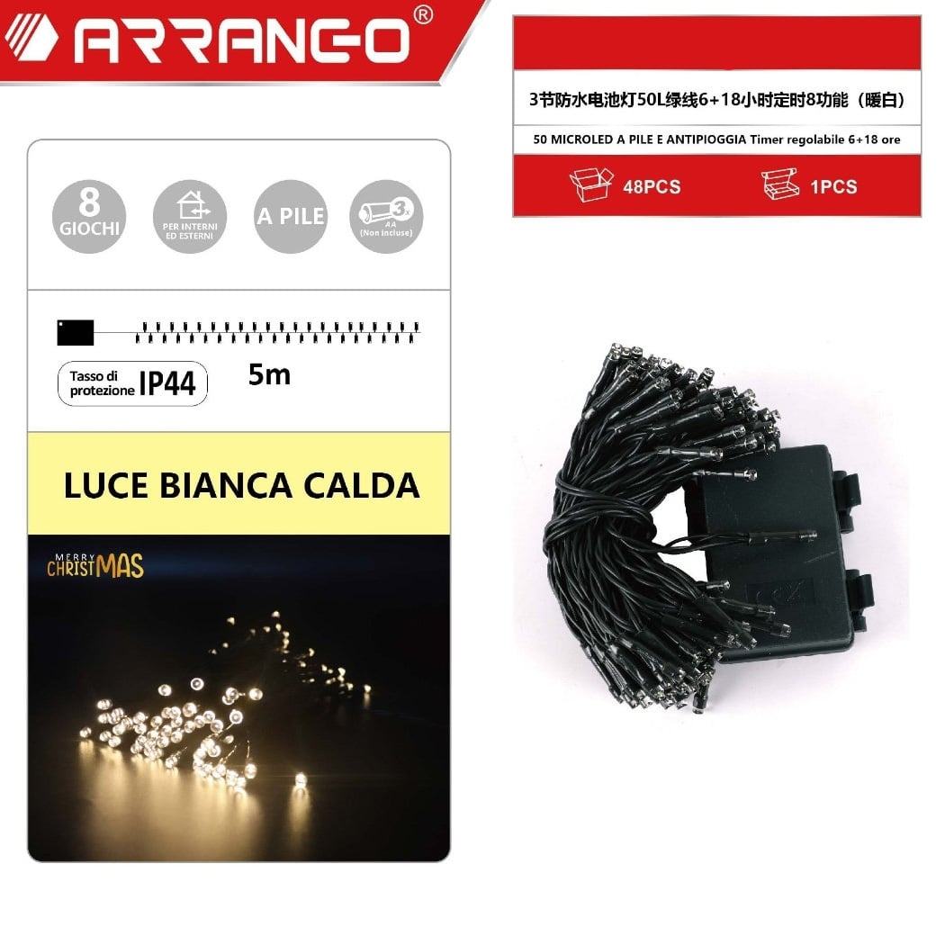 - 1 x Χριστουγεννιάτικα Αδιάβροχα Λαμπάκια Μπαταρίας 5m 50 MicroLED Θερμού Λευκού Φωτισμού με 8 Προγράμματα & Χρονοδιακόπτη