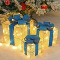 Χριστουγεννιάτικα Διακοσμητικά Δώρα LED - Σετ 3 Τεμαχίων με Μπλε Κορδέλα & Θερμό Λευκό Φωτισμό