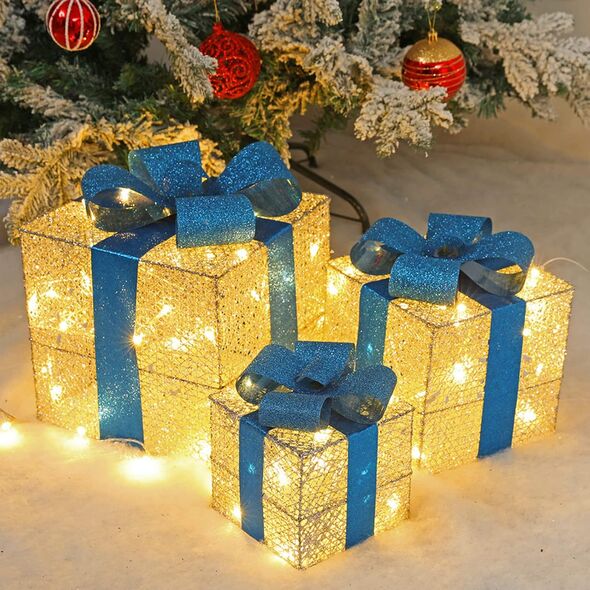 Φέρτε ζεστασιά και λάμψη στον χώρο σας με αυτό το εντυπωσιακό σετ από τρεις φωτιζόμενες χριστουγεννιάτικες κατασκευές σε σχήμα δώρου.