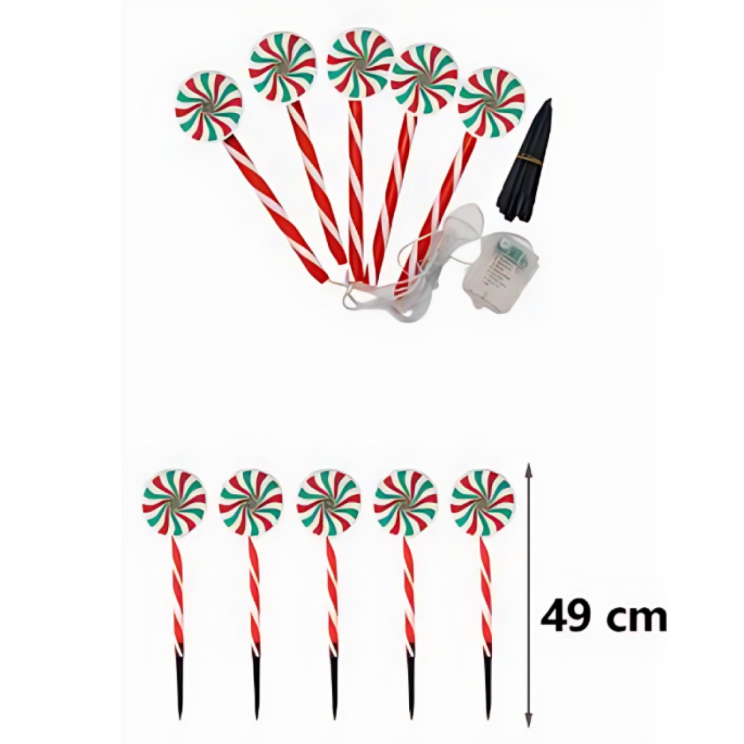 Χριστουγεννιάτικα Διακοσμητικά LED Γλειφιτζούρια - Σετ 5 τεμαχίων