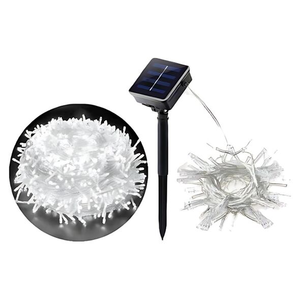 Χριστουγεννιάτικα Ηλιακά Λαμπάκια 100 LED 5m Λευκού Ψυχρού Φωτισμού – Εξωτερική Διακόσμηση με Ηλιακό Πάνελ