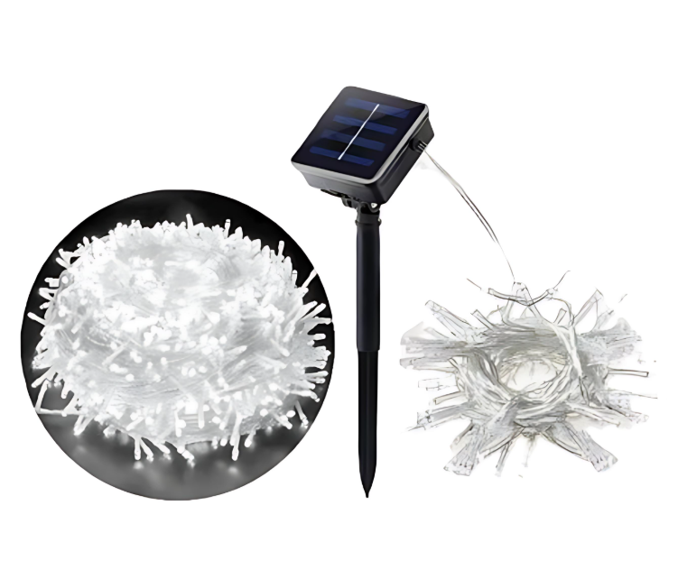 Χριστουγεννιάτικα Ηλιακά Λαμπάκια 200 LED 10m Λευκού Ψυχρού Φωτισμού – Εξωτερική Διακόσμηση με Ηλιακό Πάνελ