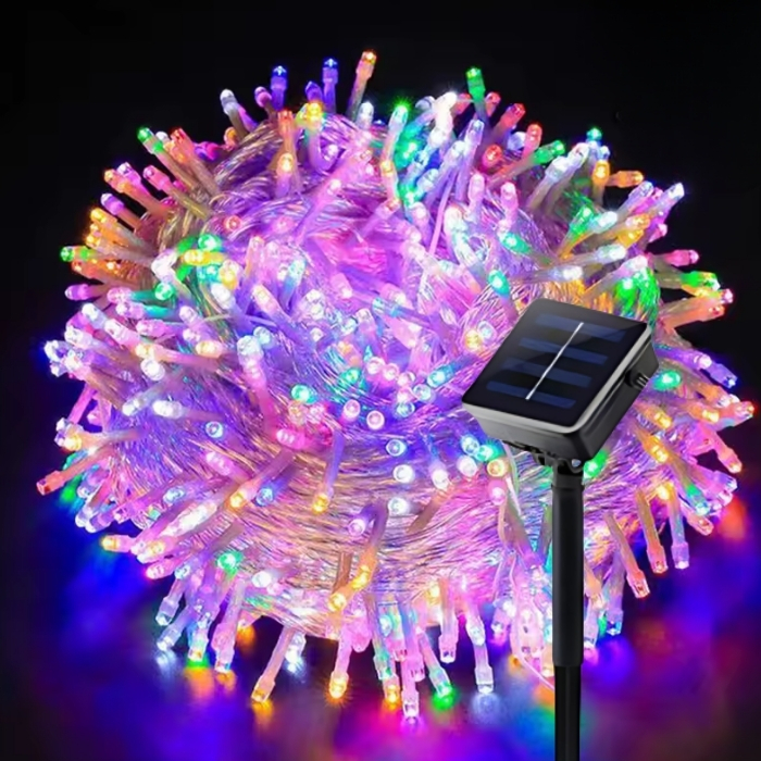 Φωτίστε τις γιορτές σας με πολύχρωμα ηλιακά λαμπάκια 360 LED, σχεδιασμένα για να δώσουν μια μαγική ατμόσφαιρα σε κάθε χώρο.
