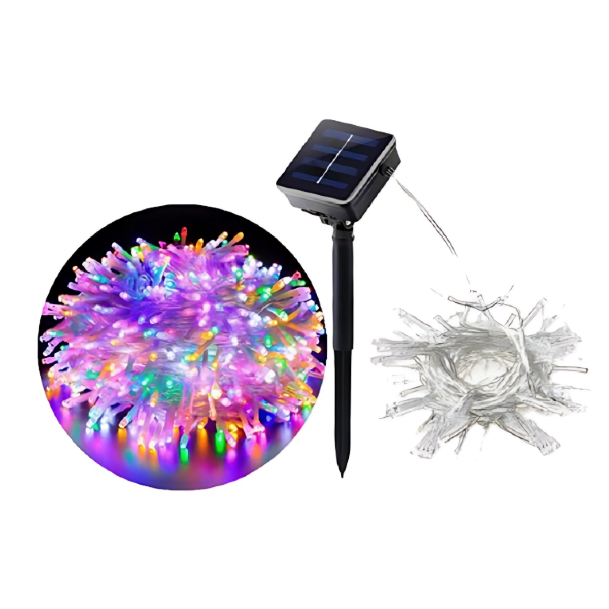 Τα Χριστουγεννιάτικα ηλιακά λαμπάκια LED 500 φώτων μήκους 25m σε πολύχρωμο φωτισμό είναι ιδανικά για εξωτερική διακόσμηση σε κήπο, μπαλκόνι ή βιτρίνα.