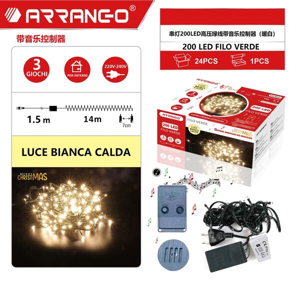 Χριστουγεννιάτικα Λαμπάκια 15.5m 200 LED Θερμού Λευκού Φωτισμού με Μουσική & 3 Προγράμματα Arrango