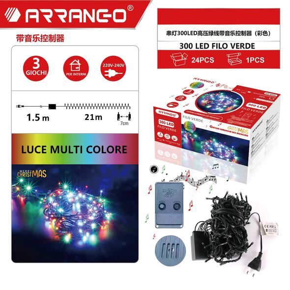 Χριστουγεννιάτικα Λαμπάκια 22.5m 300 LED Πολύχρωμου Φωτισμού με Μουσική & 3 Προγράμματα Arrango