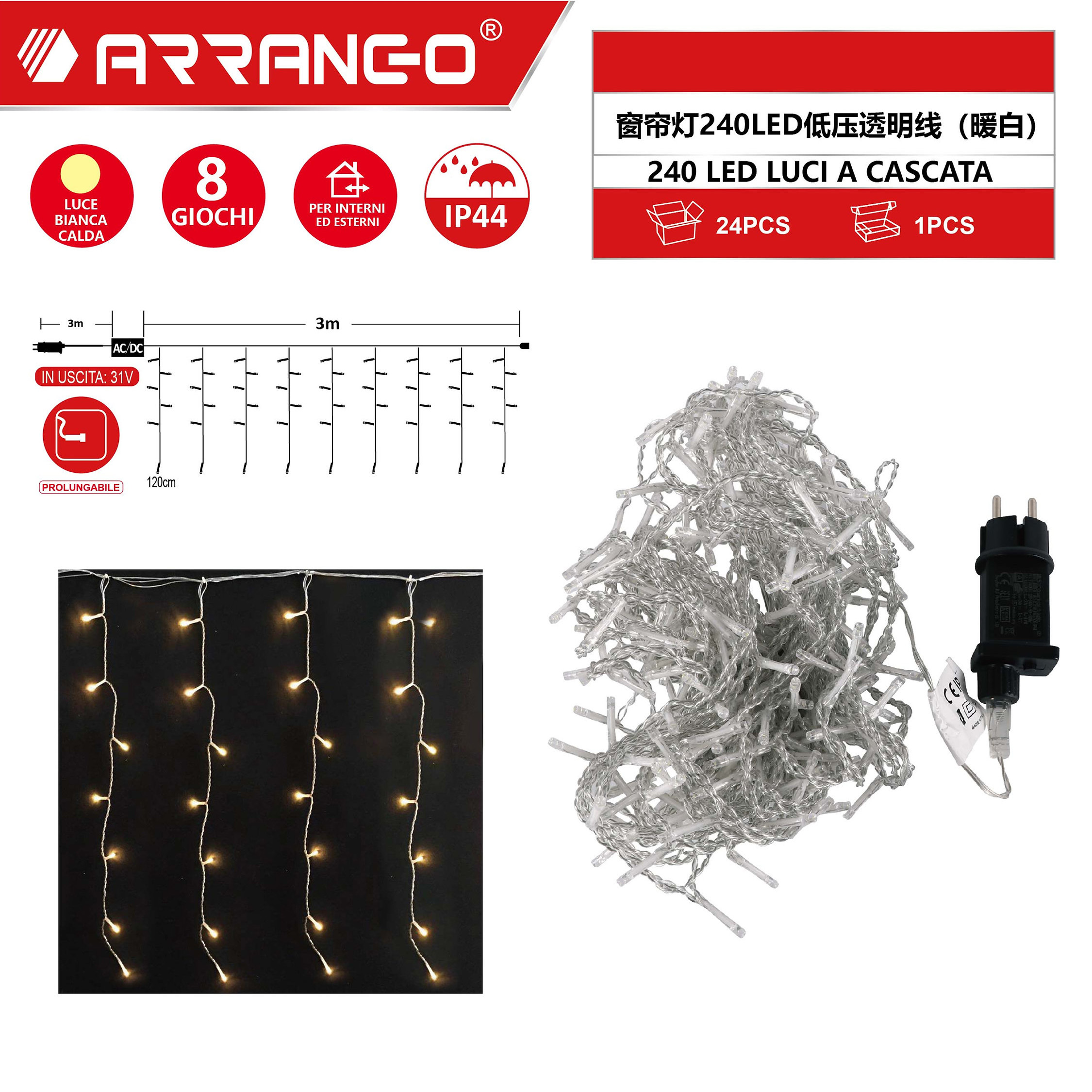 Χριστουγεννιάτικα Λαμπάκια Κουρτίνα Αδιάβροχα 6m 240 LED με Θερμό Λευκό Φωτισμό & 8 Προγράμματα ArrangoΧριστουγεννιάτικα Λαμπάκια Κουρτίνα Αδιάβροχα 6m 240 LED με Θερμό Λευκό Φωτισμό & 8 Προγράμματα Arrango