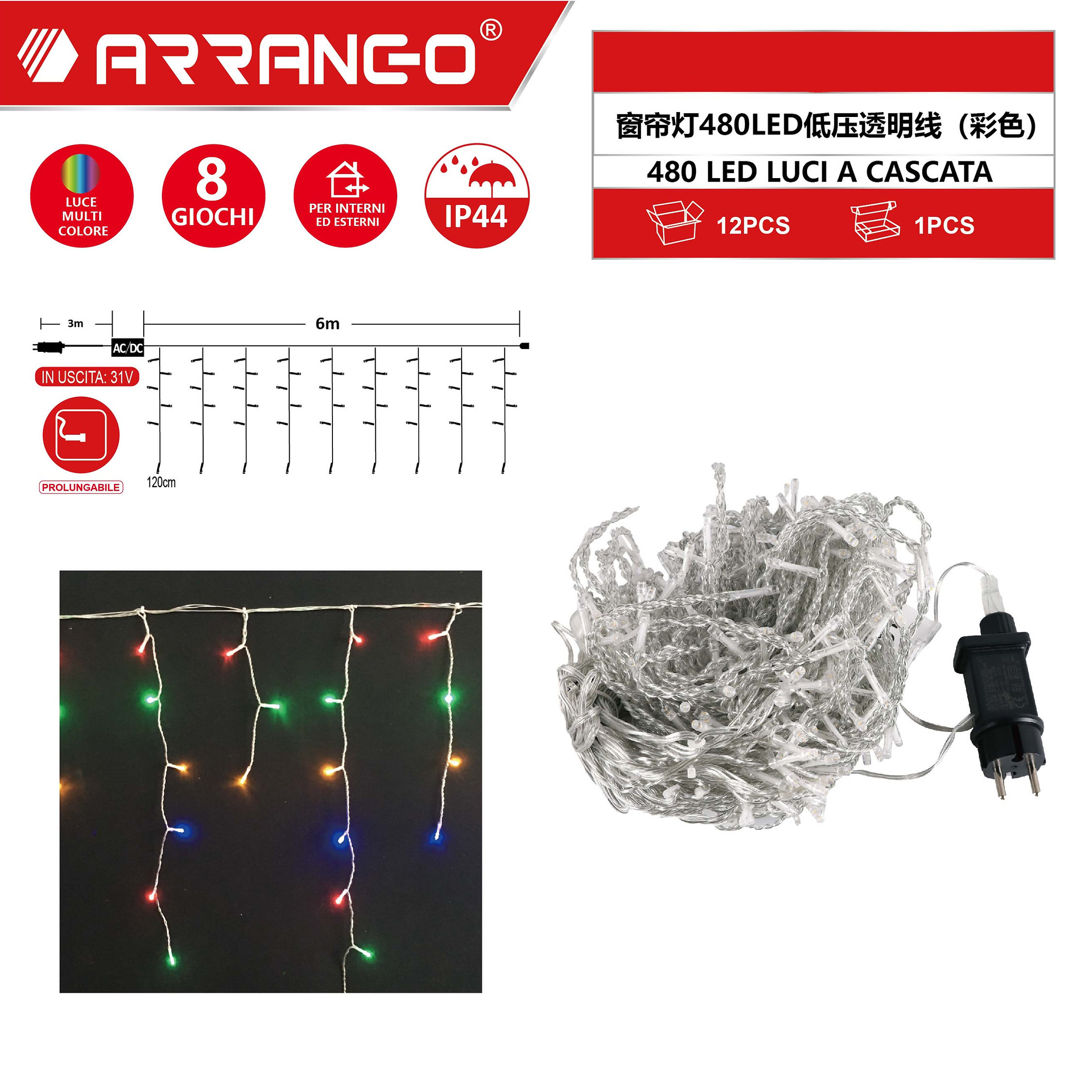 - 1 x Χριστουγεννιάτικα Λαμπάκια Κουρτίνα Αδιάβροχα 9m 480 LED RGB με Πολύχρωμο Φωτισμό & 8 Προγράμματα Arrango