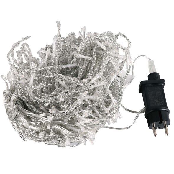 Πρόκειται για κουρτίνα με 6 μέτρα μήκος λαμπάκια που εκπέμπουν πολύχρωμο φωτισμό και 3 μέτρα καλώδιο διάφανο.