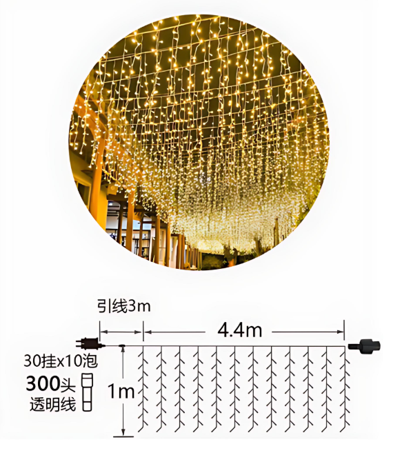 Δημιουργήστε ατμόσφαιρα μαγείας με τα Χριστουγεννιάτικα Λαμπάκια “Βροχή” 300 LED – 4.5m Θερμού Φωτισμού.