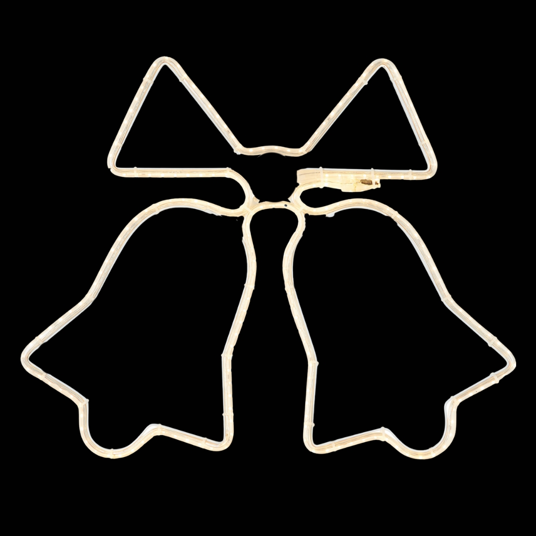 Προσθέστε λαμπερή χριστουγεννιάτικη ατμόσφαιρα στον χώρο σας με αυτό το κομψό και φωτεινό διακοσμητικό σε σχήμα καμπανών με φιόγκο, σχεδιασμένο με ενσωματωμένο φωτοσωλήνα LED σε θερμή λευκή απόχρωση.