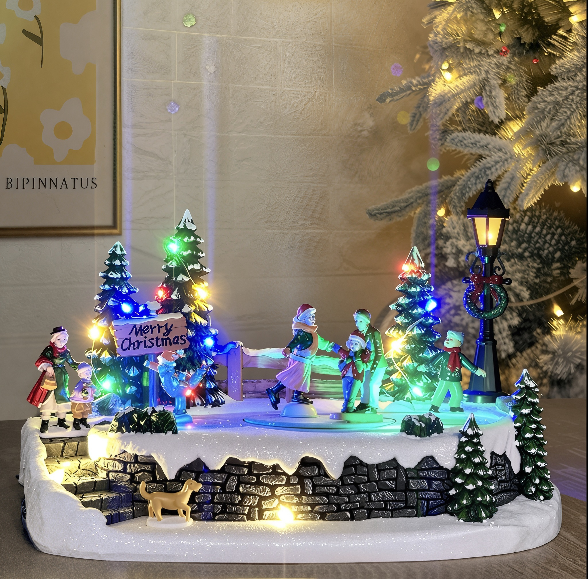 Αποτυπώστε τη μαγεία των Χριστουγέννων στο χώρο σας με αυτή τη διακοσμητική σκηνή παγοδρομίου που συνδυάζει κίνηση, μουσική και φωτισμό LED.