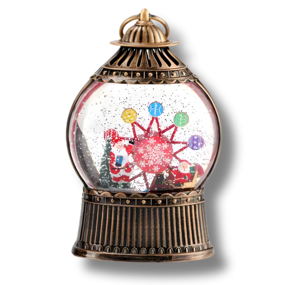 Κατασκευασμένη από ανθεκτικό πλαστικό και ακρυλικό, η χιονόμπαλα έχει μπρονζέ φινίρισμα που θυμίζει παλιό φαναράκι εποχής.