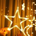 Χριστουγεννιάτικη Κουρτίνα 3m με 120 Led Λαμπάκια σε Σχήμα Αστεριών και Φεγγαριών Λευκού Θερμού Φωτισμού