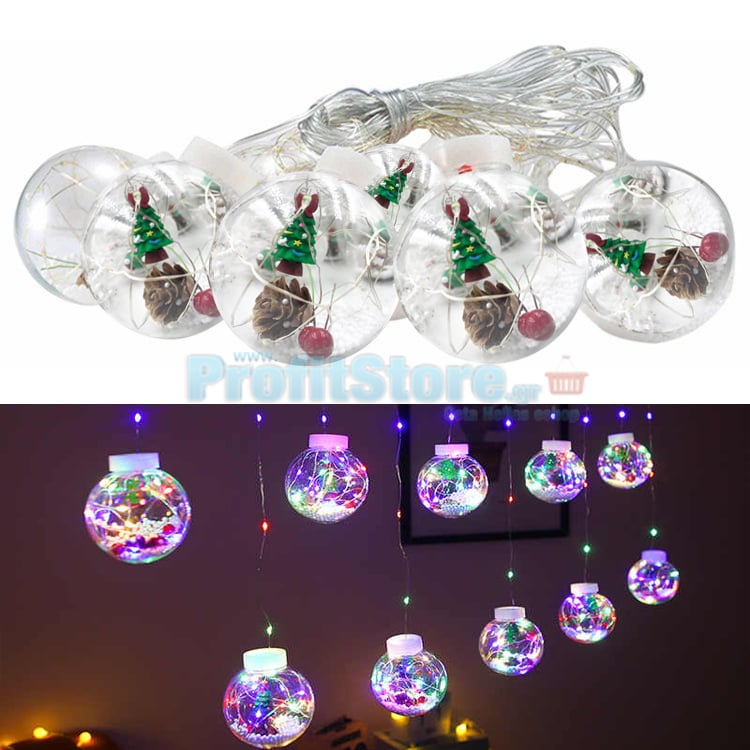 Χριστουγεννιάτικη Κουρτίνα - Φωτάκια Έλατο 10 Διάφανες Μπάλες με RGB Φωτισμό 3m - Curtain Light 10 Hangings