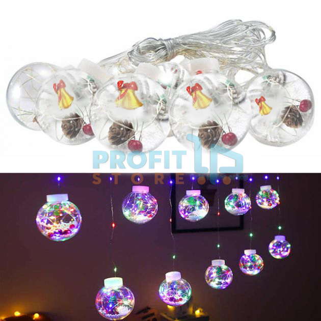 Μπείτε στο κλίμα των Χριστουγέννων και διακοσμήστε τους χώρους σας με την Χριστουγεννιάτικη κουρτίνα 3m RGB Φωτισμού με 10 διάφανες μπάλες!