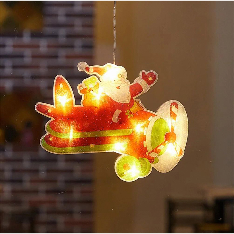 Χριστουγεννιάτικη Κρεμαστή Φιγούρα Αγιος Βασίλης σε Ελικόπτερο με Μπαταρίες Βεντούζα και 10 LED