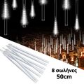 Χριστουγεννιάτικη LED Βροχή Μετεωριτών 8τμχ x 50cm Λευκός Ψυχρός Φωτισμός - Σταγόνες Σταλακτίτες Επεκτεινόμενη