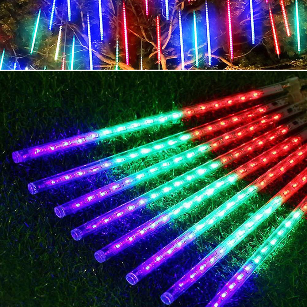 Χριστουγεννιάτικη LED Βροχή Μετεωριτών 8τμχ x 50cm RGB Πολύχρωμος Φωτισμός με 24 LED - Γιρλάντα Σταγόνες Σταλακτίτες Επεκτεινόμενη