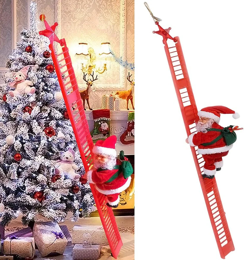 Ο Άγιος Βασίλης σκαρφαλώνει ρυθμικά προς τα δώρα, γεμίζοντας τον χώρο σας με ήχους και κίνηση – μια τέλεια προσθήκη για όσους αγαπούν τις εντυπωσιακές διακοσμήσεις.